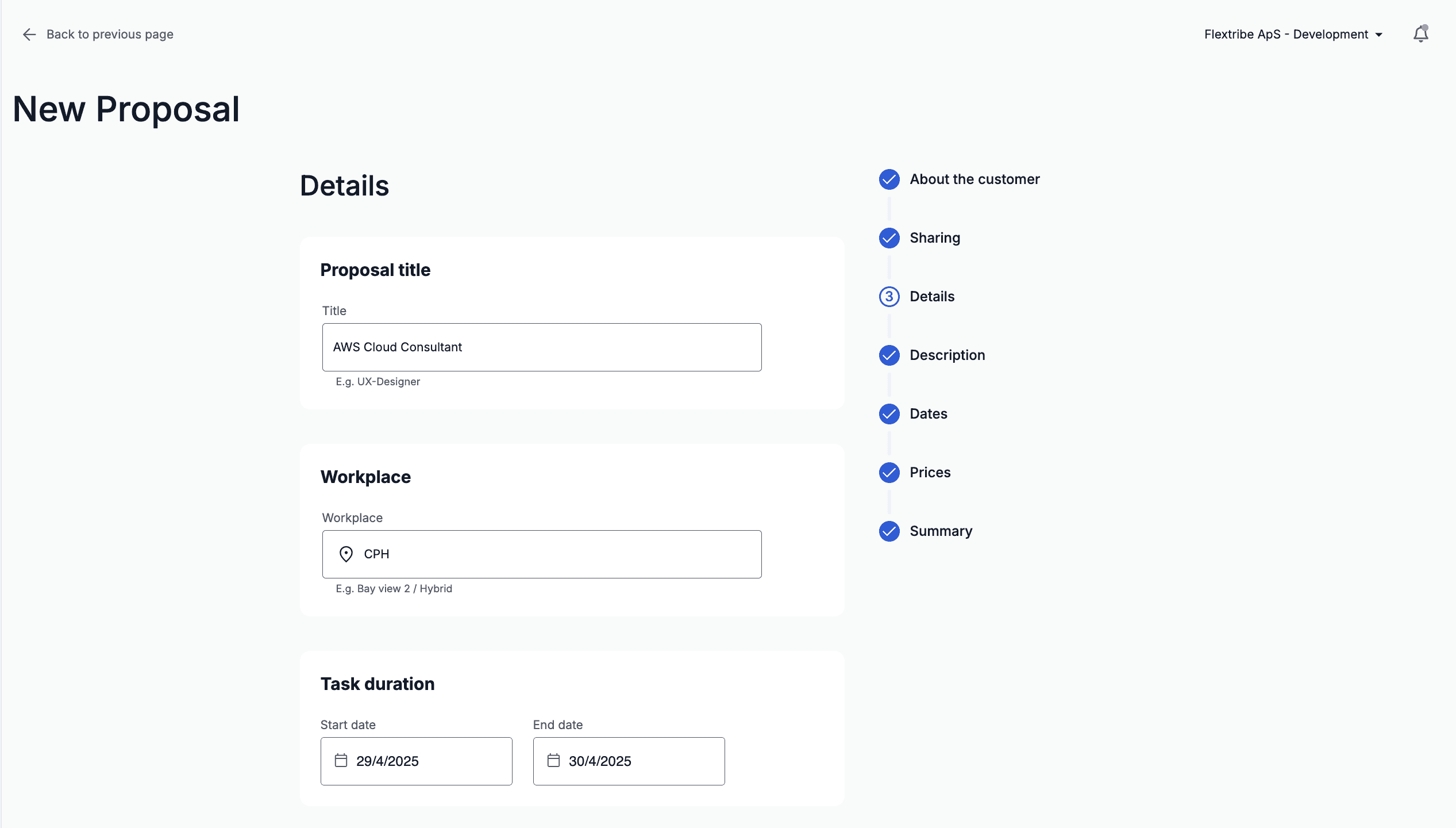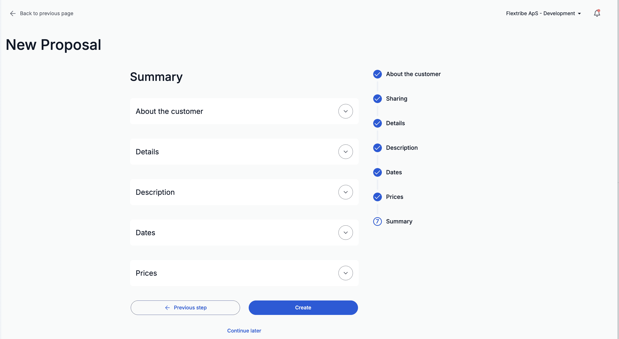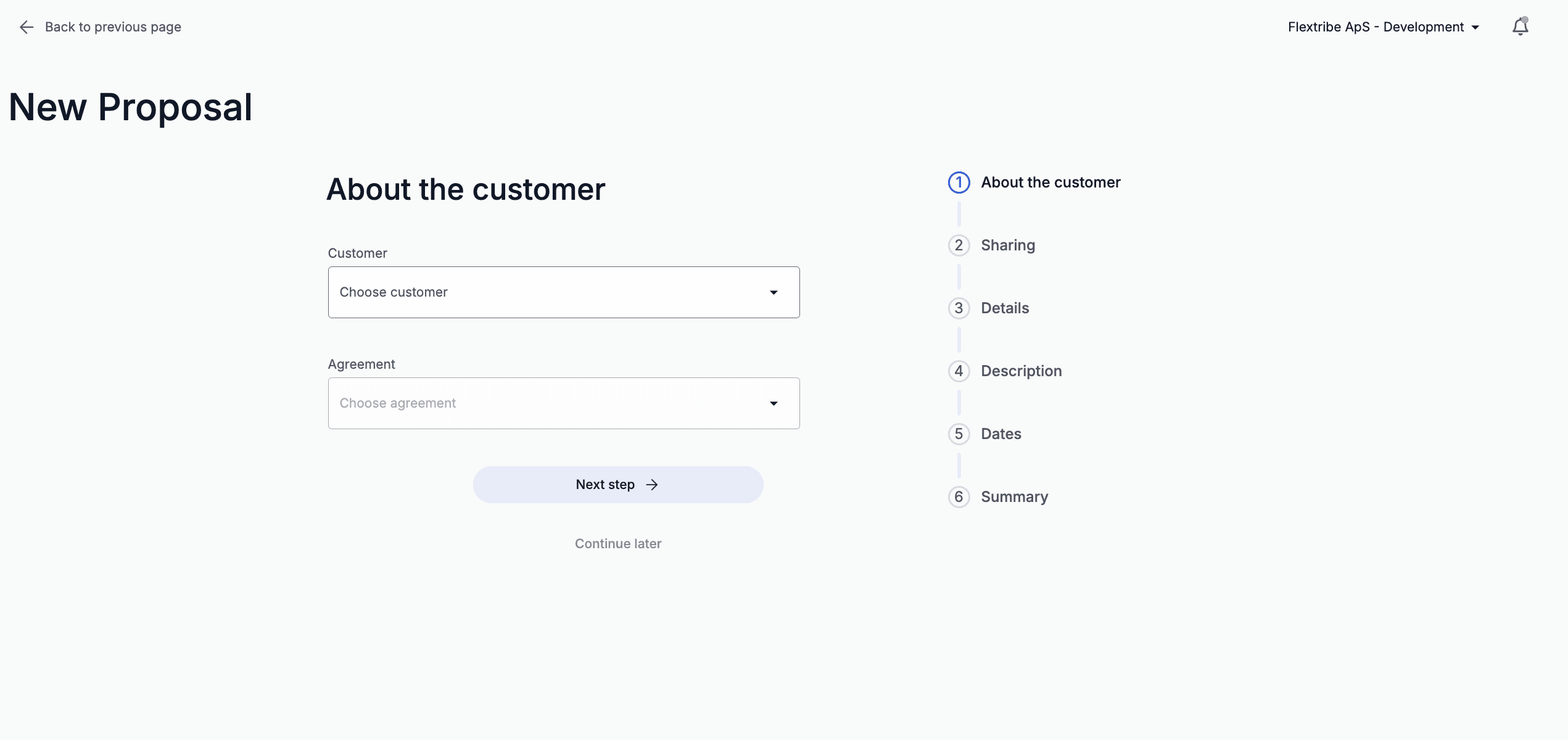 When creating a new proposal, you’ll be guided through an easy step-by-step flow designed to capture all the necessary information.