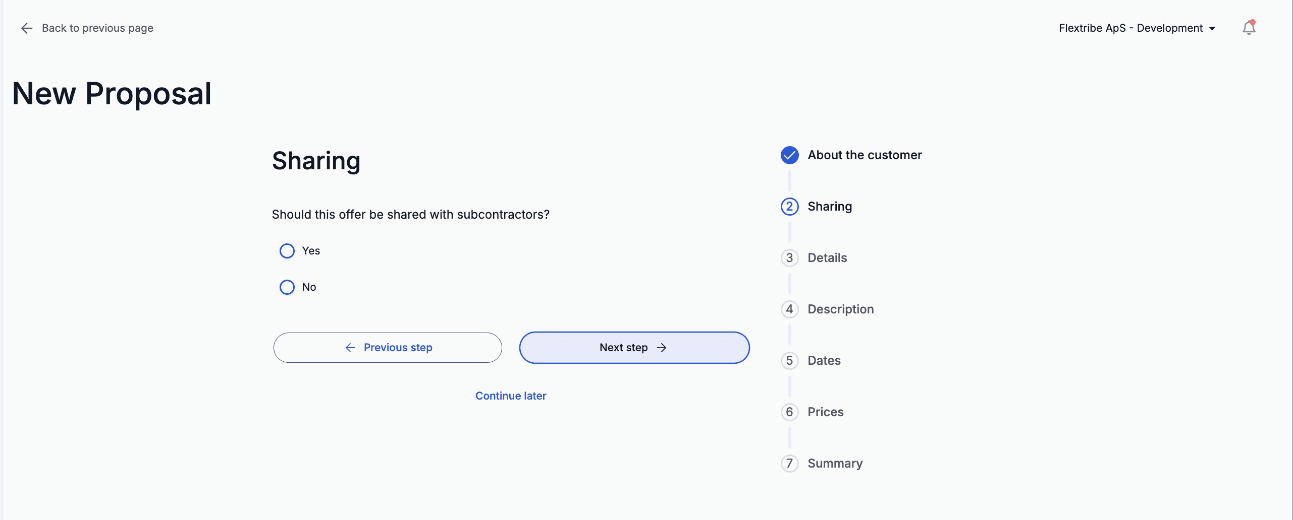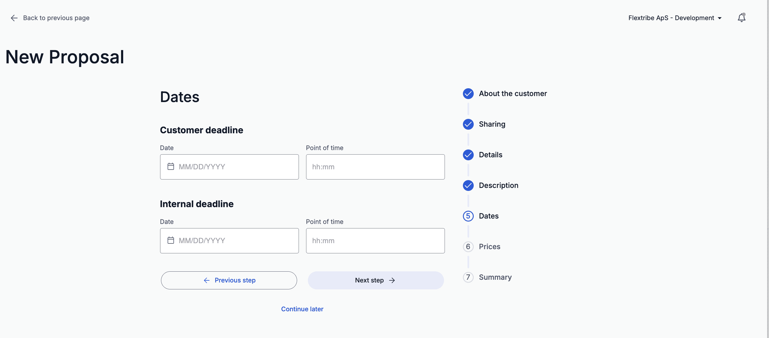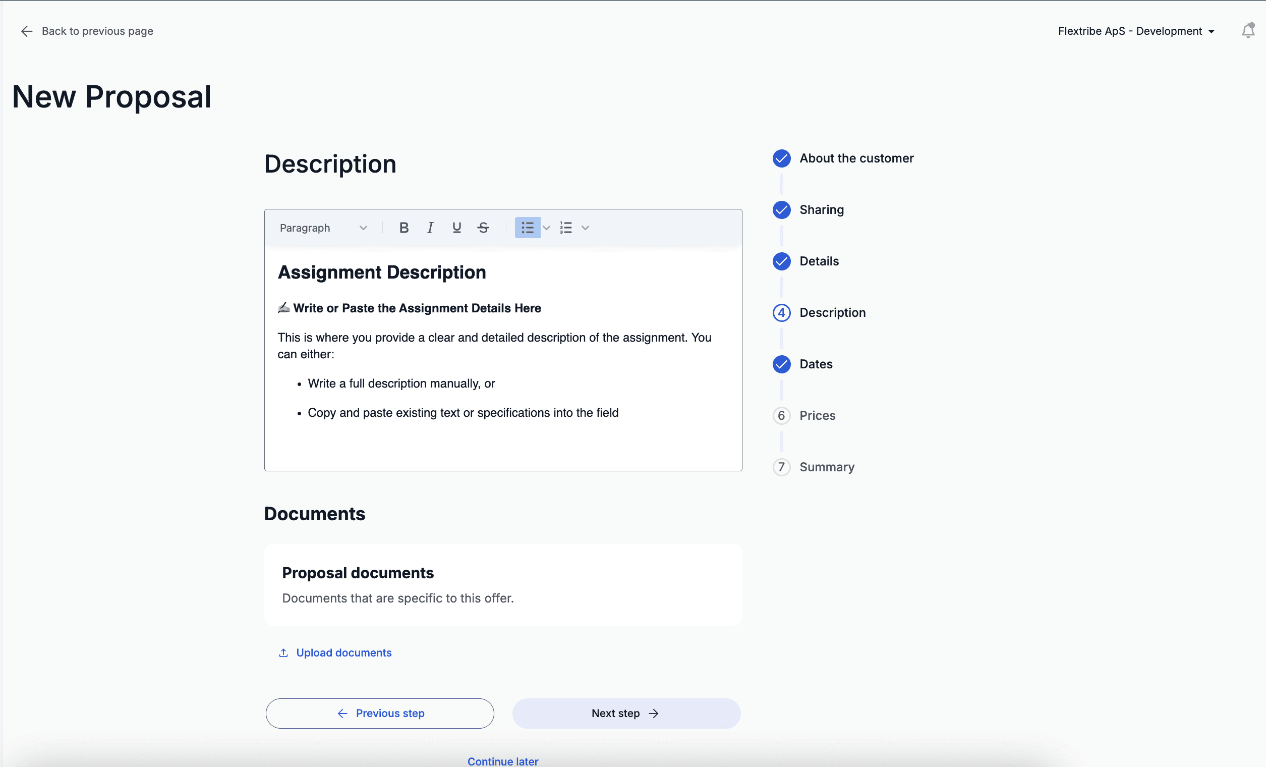When creating a new proposal, you’ll be guided through an easy step-by-step flow designed to capture all the necessary information.